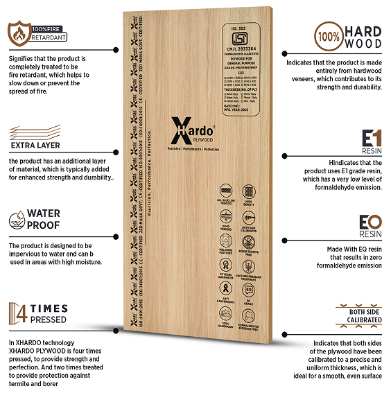 XHARDO Plywood undergoes a four-time pressing process for superior strength and flawless finish, and is treated twice to ensure long-lasting protection against termites and borers.